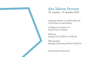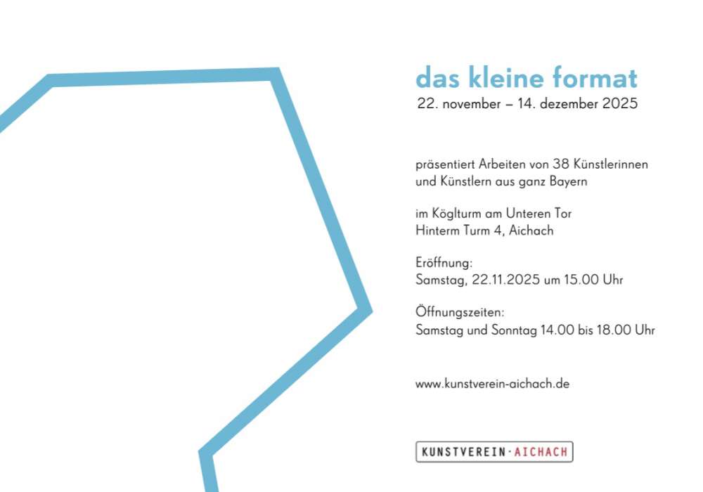 Ich freue mich, dass ich unter vielen Einsendern aus ganz Bayern von der Jury ausgewählt wurde und mit weiteren 37 Künstlern die Ausstellung 'Das kleien Format' gestalten darf.